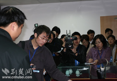 湖北化工研究所的員工展示光纖產(chǎn)品