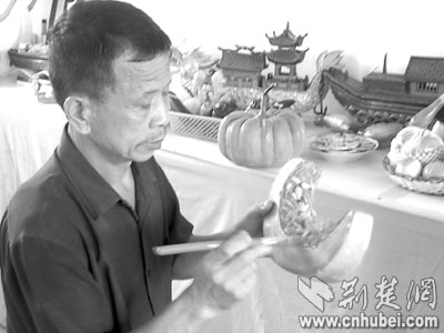 “老人家,這確實(shí)是用泡沫雕成的。”人群中,走出一個人。他是這個“冒牌貨”的生產(chǎn)者,特意帶著自己的“作品”,來菜場一顯身手的。