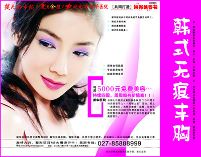 今日起,對(duì)光子嫩膚、割雙眼皮、隆鼻、除皺、豐胸、脫毛、文唇、美齒等時(shí)尚美容感興趣的讀者,可撥打電話027-86772101,報(bào)名參加“美麗之旅”,本集團(tuán)將組織專家篩選之后,為入圍讀者量身定做各種免費(fèi)美容體驗(yàn)項(xiàng)目;同時(shí),想詳細(xì)了解各種美容過程的讀者,也可報(bào)名參加,現(xiàn)場(chǎng)觀摩。報(bào)名活動(dòng)將持續(xù)到本周五。