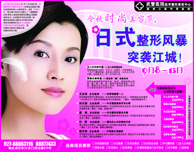 今秋時(shí)尚美容節(jié) 武警醫(yī)院醫(yī)學(xué)整容美容中心“日式整形”風(fēng)暴突襲江城!