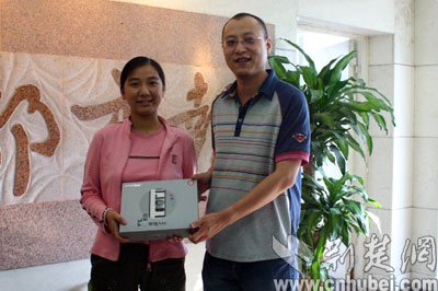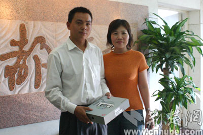 四時(shí)整,楚天都市報(bào)副總編輯費(fèi)力和荊楚網(wǎng)副總編輯張劍分別為兩位中獎(jiǎng)?wù)哳C發(fā)了獎(jiǎng)品,并希望他們繼續(xù)關(guān)注這次活動(dòng),能再次成為最后大獎(jiǎng)的幸運(yùn)讀者。
