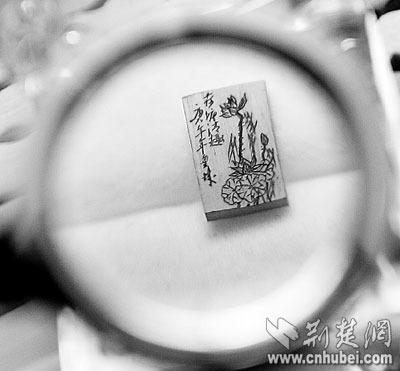 荊楚網(wǎng)(楚天都市報(bào))(記者何君輝實(shí)習(xí)生周中華)寫意的中國山水畫,形態(tài)各異的花鳥蟲魚,憨態(tài)可掬的國寶大熊貓,風(fēng)格迥異的詩詞……承載它們的,竟然是如米粒大小的象牙片或動(dòng)物骨片。昨日,記者在微雕藝人童洪斌家中,手持放大鏡,領(lǐng)略了他的微雕絕活。