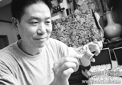 慢功出細(xì)活。童洪斌在半粒米大小的象牙片上創(chuàng)作的大熊貓,在去年舉行的武漢市國際文化產(chǎn)業(yè)博洽會(huì)上,作為禮物送給外國友人。