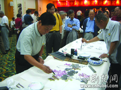 昨日,來自中、日、新、韓四國(guó)共26名書畫大家在游覽三峽后,紛紛揮毫潑墨,并與宜昌本土?xí)嫾疫M(jìn)行了交流。據(jù)了解,此次四國(guó)書畫家友好聯(lián)盟大型筆會(huì)活動(dòng),是由宜昌市政協(xié)、宜昌點(diǎn)軍區(qū)政府和宜昌環(huán)中房地產(chǎn)開發(fā)有限公司、宜昌環(huán)中旅游開發(fā)有限公司共同舉辦的。荊楚網(wǎng)楚天都市報(bào)記者梅曉蕓攝