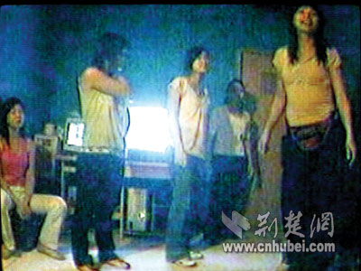 圖一:3樓過(guò)道坐滿濃妝艷抹的女子。