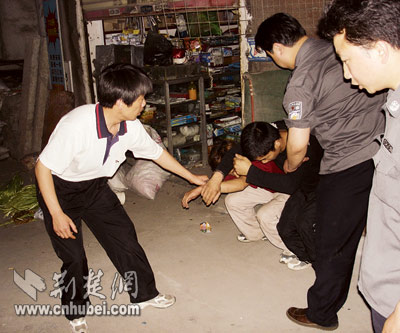 出租車過了鐵路道口后,左拐上了武金堤,緊接著又右拐來到八鋪街,在“榮新五金水暖經(jīng)營部”門前停下。此時,兩名民警也趕到,在店中將幾名扒賊生擒。民警清點涉案扒賊時,發(fā)現(xiàn)廁所的門打不開,于是責令房東強行打開,在僵持了四五分鐘后,房東一腳踹開了廁所的木門,涉案主謀最終落網(wǎng)。