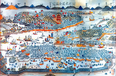 地圖顯示:武漢當(dāng)時就已形成漢口城、武昌城、漢陽城三足鼎立,成為我國的商貿(mào)重地。