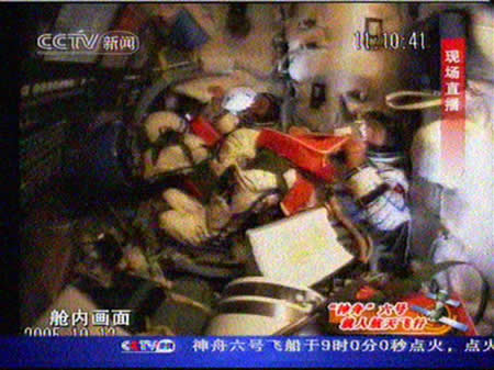 組圖:神六宇航員的第一頓“太空餐”