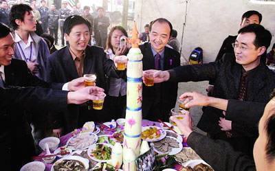 一道道菜來一杯杯酒,幾多祝福幾多歡笑!人們用熱烈而又樸實(shí)的方式,共賀聶海勝41歲生日,并期盼他凱旋!