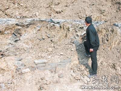 昨日下午,根據群眾舉報,記者隨襄樊文物局的兩名工作人員趕到現(xiàn)場——宜城市農業(yè)局質保站基建工地。只見地基挖掘工程并未停下,坑內一座古墓局部被破壞,三座古墓完全暴露,到處都是殘磚碎瓦。墓內文物隨時有被盜和流失的危險,急待搶救性發(fā)掘保護。但是,現(xiàn)場施工仍在進行。