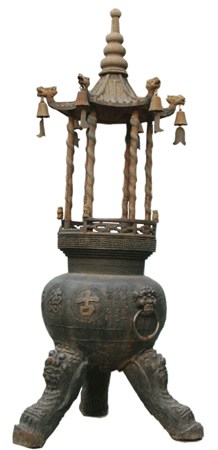 王殿和圓通寶殿之間,安放著一個(gè)鑄造于民國(guó)初年的寶鼎,這是1997年時(shí),寺內(nèi)的師傅們從寺院的地下挖出來的。時(shí)光磨洗,老香爐和圓通寶殿的墻壁一樣斑駁,不過“古德寺”以及“中華民國(guó)十四年歲”等字樣依然清晰。