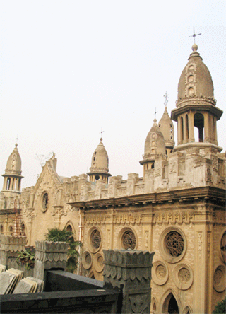 圓通寶殿迥異于一般的中國(guó)寺院,它既有天竺佛國(guó)的絢爛,又不失西方哥特教堂的莊嚴(yán),甚至還結(jié)合著中國(guó)道家的一些幽玄古雅,有一種難以言狀的韻致。正面看去,石質(zhì)的軀體敦實(shí)穩(wěn)重,一磚一石,一欄一柱,都是悠然淡泊的面孔;一條回廊繞殿而建,光影迷藏,似有無盡禪機(jī);回廊之上雕花遍布,石柱上如意盤亙,石柱兩側(cè)雕著大象和獅頭,墻上有如盾牌的浮雕其實(shí)是頭頸脫落的大鵬金翅鳥;大殿的頂上九十六座蓮花墩環(huán)繞著九座穹頂佛塔,威嚴(yán)地鎮(zhèn)守著這座龐大的建筑。寺中的師傅告訴我們,屋頂?shù)膰鷻谏媳驹撨有二十四諸天佛像,如今已不存。