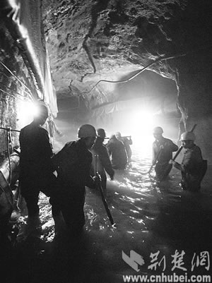 這是一群怎樣的鋼鐵漢子喲!他們兩年中遭遇38次突泥突水,每次大的搶險,都要持續(xù)數(shù)十小時,每次都有10多人暈倒;從開工至今,先后有20多名工人實在頂不住,走掉了,但絕大多數(shù)人沒有向困難低頭,選擇了繼續(xù)戰(zhàn)斗;在掘進(jìn)工作面上,除了機械設(shè)備,他們身邊還有50多套救生衣、救生圈,1萬多條防水編織袋,甚至還有一只皮劃艇……