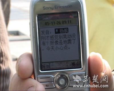 8點(diǎn)50分左右,記者在辦公室看到水杯、窗戶等都有明顯震動(dòng)。隨后,辦公室熱線電話響個(gè)不停。家住武昌、漢口、青山、漢陽(yáng)等地?cái)?shù)十位網(wǎng)友紛紛來(lái)電,均稱有明顯震感。鄂州城區(qū)維新路的王先生、洪湖建行大廈八樓的汪女士也致電本網(wǎng),稱當(dāng)?shù)赜姓鸶小?/P>