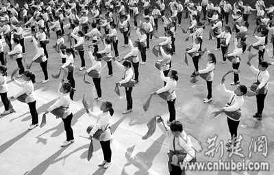 昨日,武漢市石喬口區(qū)輕汽小學(xué)學(xué)生在大課間進(jìn)行腰鼓訓(xùn)練(下圖)。為保障農(nóng)民工子女順利入學(xué)就讀,該區(qū)投資1000多萬(wàn)元改善全區(qū)農(nóng)民工子女學(xué)校的辦學(xué)條件,通過(guò)設(shè)立助學(xué)金、減免學(xué)雜費(fèi)等形式,幫助20078名農(nóng)民工子女順利入學(xué)就讀(右圖)。(記者張鴻 通訊員楊斌 周浩攝)