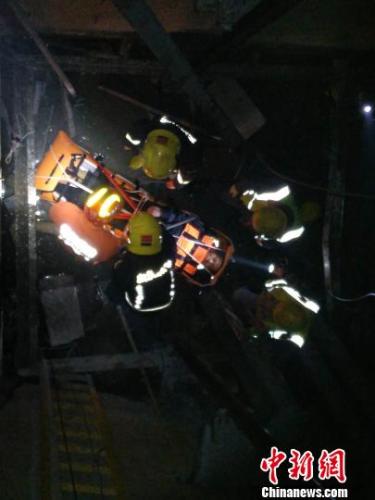 工人不慎跌入6米深電梯井消防員接力營(yíng)救 李斌 攝