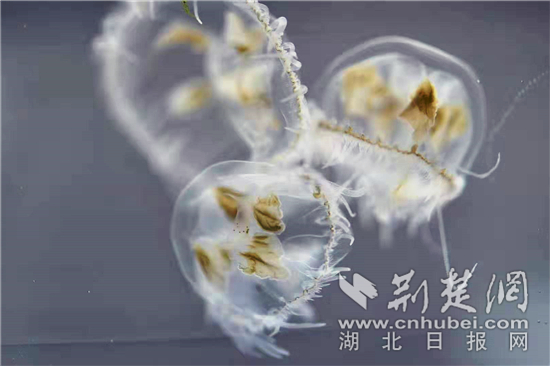 桃花水母是在淡水中生活的小型水母,最早誕生于約5.5億年前,是名副其實(shí)的“活化石”,具有極高的研究價(jià)值和觀賞價(jià)值,為世界級(jí)瀕危物種和國家一級(jí)保護(hù)動(dòng)物。