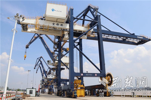 宜昌港宜都港區(qū)紅花套作業(yè)區(qū)綜合碼頭現(xiàn)場(chǎng)。