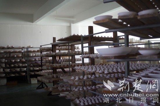 圖為:二次上釉,“等待”再次高溫?zé)频拇善鳌P茏予?攝