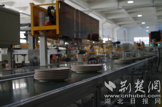圖為:“流水線”上的瓷盤。熊子璇 攝