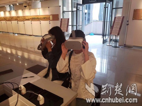 荊楚網客戶端—荊楚網消息(湖北日報大學生記者 張含笑)戴著VR設備看名畫《清明上河圖》,是種怎樣的體驗? 11月9日,在中南民族大學美術館內的“筆墨丹青,清風雅韻”中國歷代館藏書畫藝術展上,不少前來觀展的大學生通過VR設備體驗了一秒穿越回北宋的神奇之旅,不僅能欣賞名畫,還能身臨其境地“走進”名畫。