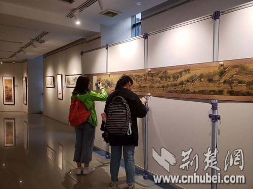 中國歷代畫家、書法家浩瀚如煙,作品如海,流派紛呈。11月4日,“筆墨丹青,清風雅韻”中國歷代館藏書畫藝術展在中南民族大學開幕?,F(xiàn)場展出仇英、吳昌碩、關槐、張大千、趙之謙、王時敏、唐寅等人作品七十余幅,每幅作品旁均配有文字介紹作品及作者,觀眾還可以通過現(xiàn)場掃描二維碼查看畫作細節(jié)圖以及具體介紹。