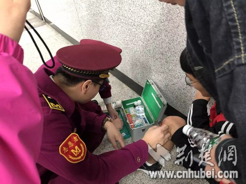 余濤宏在飛奔下樓時不慎摔倒。武漢地鐵 供圖
