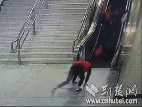 荊楚網(wǎng)客戶端—荊楚網(wǎng)消息(湖北日報大學(xué)生見習(xí)記者李國慶 徐椿 攝影 張耀辰 陳垚)11月24日上午,在武漢地鐵七號線紙坊大街站,一名中年男子乘電扶梯時因打電話沒站穩(wěn)摔倒。在這危急時刻,一位小伙子從樓梯上一躍而下,連滾帶爬關(guān)停電梯,整個過程用時僅幾秒。