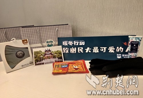 當(dāng)日凌晨四點(diǎn),中南民族大學(xué)資訊民大學(xué)生團(tuán)隊(duì)的志愿者們,來到該校學(xué)正門門衛(wèi)室、一食堂、南書院等地,為“守夜”的工作者們遞上了熱茶并贈送了“愛心禮包”。這份禮包是學(xué)生們特意準(zhǔn)備的,里面裝有手套、口罩、護(hù)手霜、暖寶寶以及明信片。