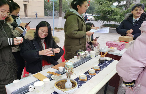 同學(xué)在科普中國(guó)茶文化。張含笑 攝