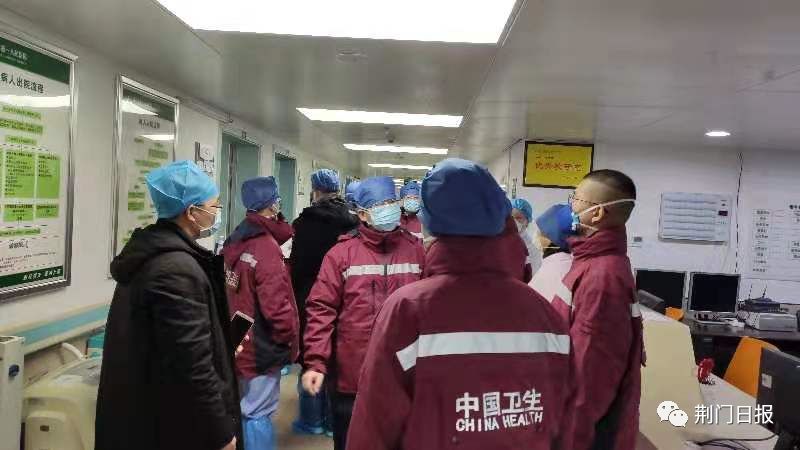 當天下午,醫(yī)療隊來到荊門一醫(yī)北院,對院區(qū)的感染病區(qū)設置、院感控制等進行了深入的了解,并在醫(yī)院遠程會診中心就部分危重癥病例開展了集中會診,隨后到病房進行了工作交接,為后續(xù)的協(xié)作深入開展奠定基礎。