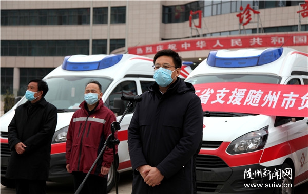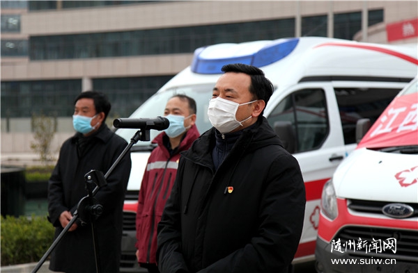 隨州日?qǐng)?bào)訊(全媒記者 徐軍國(guó)、劉詩(shī)詩(shī))2月14日,江西省向隨州緊急捐贈(zèng)4輛負(fù)壓救護(hù)車(chē),用于隨州市新冠肺炎疫情防控。江西省支援隨州市前方指揮部指揮長(zhǎng)、江西省委統(tǒng)戰(zhàn)部常務(wù)副部長(zhǎng)陳敏,市委副書(shū)記、市長(zhǎng)克克分別致辭。市委常委、常務(wù)副市長(zhǎng)林常倫主持捐贈(zèng)儀式。市政府黨組成員劉光海等參加捐贈(zèng)儀式。
