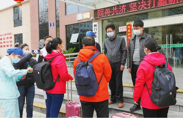 80后、90后的無畏與付出讓人感動(dòng)。25日下午3時(shí),荊門二醫(yī)院長(zhǎng)鄭小艷、黨委書記李成龍等為他們送行,并囑咐3位“逆行”的勇士,要加強(qiáng)防護(hù)、注意休息,希望他們能夠全力以赴地完成這次支援任務(wù),平安凱旋。