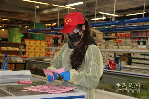 鄭欣怡在中百倉儲百步亭店志愿服務(wù)。圖片由受訪者提供