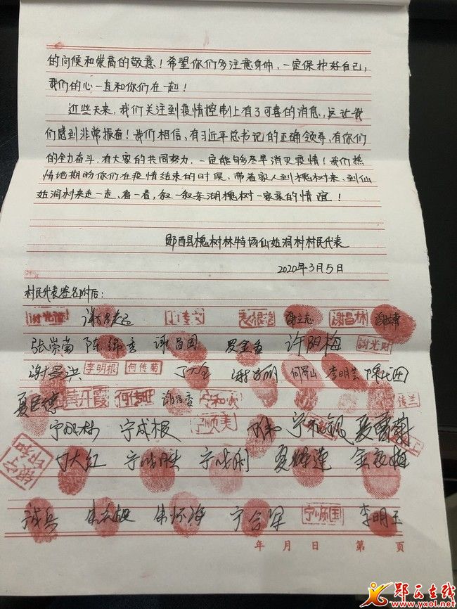 張修林從包里拿出一沓信件遞給記者, 一封摁著100多個紅手印的信件格外引人注意。這是鄖西縣槐樹林特場仙姑洞村村民代表寫給武漢市生態(tài)旅游風(fēng)景區(qū)的一封信。