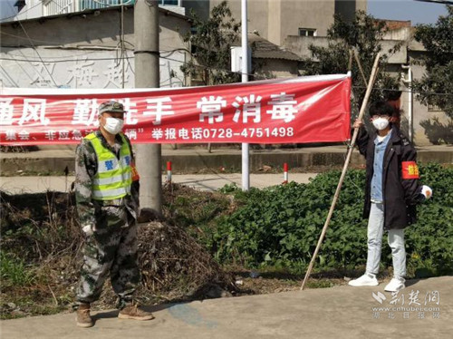 家住天門市汪場鎮(zhèn)別臺村的19級學(xué)生崔鼎,早早就跟父親一起報名參加到防疫抗疫一線,參與村出入口卡點值守、參與村里巡視巡查,勸阻村民扎堆聊天、打麻將等。3月7日,村里一位老伯伯得知志愿者們忙于執(zhí)勤沒吃上午飯,立刻送來了一袋酥餅、一箱橘片爽,讓崔鼎父子心生暖意。在大家的共同努力下,截至3月9日,別臺村無一例確診病例。