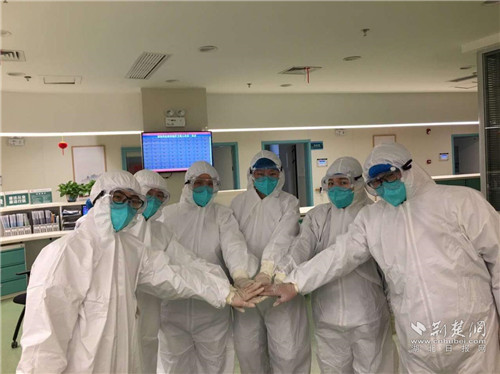 張文哲與鐘祥市第一人民醫(yī)院志愿者們互相加油鼓勁。(受訪人供圖)