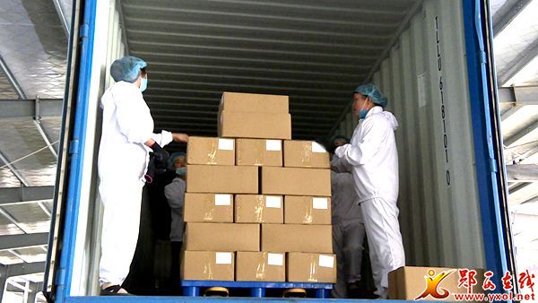 在公司廠內(nèi)貨物轉(zhuǎn)運(yùn)區(qū),記者看到,公司上上下下今天顯得比以往都高興,工人們也特別起了個(gè)大早,有的忙著給貨物貼標(biāo)簽,有的忙著來回轉(zhuǎn)送貨物,并將貨物整齊有序的搬上集裝箱貨物運(yùn)輸車。