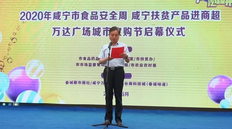 6月18日上午,在咸寧萬達(dá)萬達(dá)廣場(chǎng)舉辦“食品安全周,扶貧產(chǎn)品進(jìn)商超”啟幕儀式,市政府副市長(zhǎng)吳剛,市政協(xié)副主席尤晉,市政府副秘書長(zhǎng)廖朝輝出席活動(dòng)。