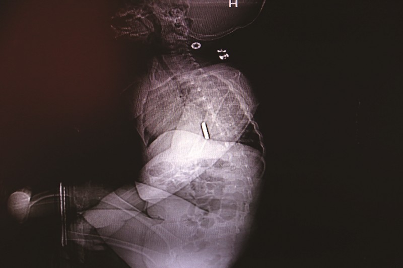 更加危險的是,紐扣電池在佳佳的食管內(nèi)停留了6天,已導(dǎo)致食管灼傷、穿孔,十分兇險。據(jù)佳佳的母親文女士介紹,8月8日,他們從外地回到鄖西,佳佳一直在家里和哥哥玩,可能在玩哥哥的電動玩具時,不慎將紐扣電池吞入了腹中。