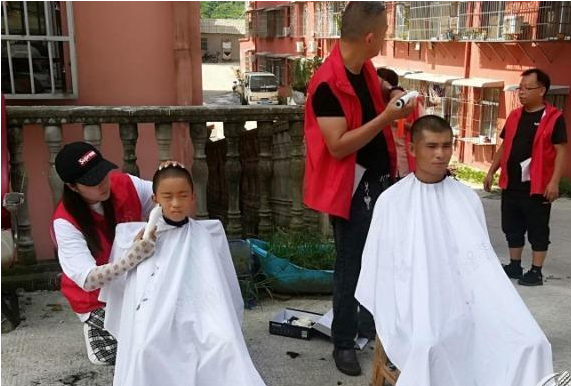 和尚嶺社區(qū)物業(yè)黨員志愿隊(duì)為小區(qū)居民理發(fā)