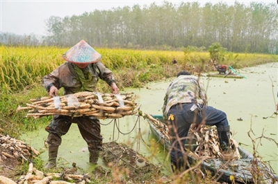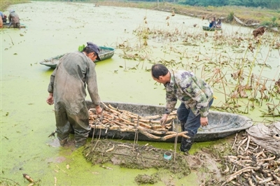 10月26日,嘉魚縣陸溪鎮(zhèn)界石村鴨兒湖養(yǎng)殖專業(yè)合作社里,負責人龔木前正和工人們一起忙著挖藕、稱重、清洗、包裝。龔木前是一名退役軍人,2009年,龔木前從部隊轉業(yè)后回鄉(xiāng)創(chuàng)業(yè),承包了村里50畝荒湖種野藕。經(jīng)過幾年時間的發(fā)展,他成立了農(nóng)業(yè)合作社,把藕塘面積擴大到300多畝。近些年,通過他的努力,他家的野藕通過電商遠銷全國各地,高峰期時,每天可以接到200余張訂單。 通訊員 耿海軍 杜瑞 攝