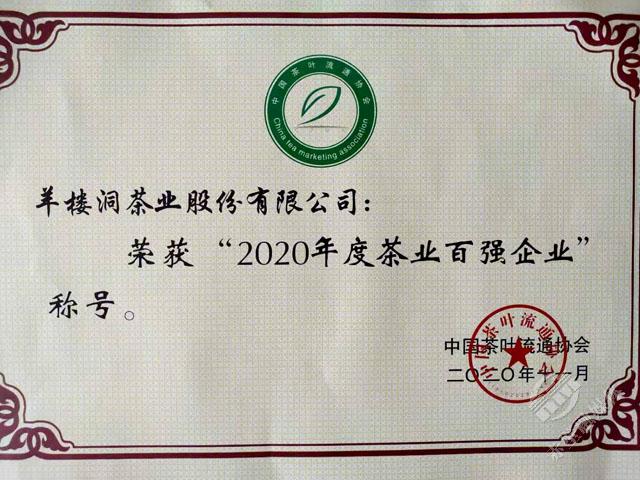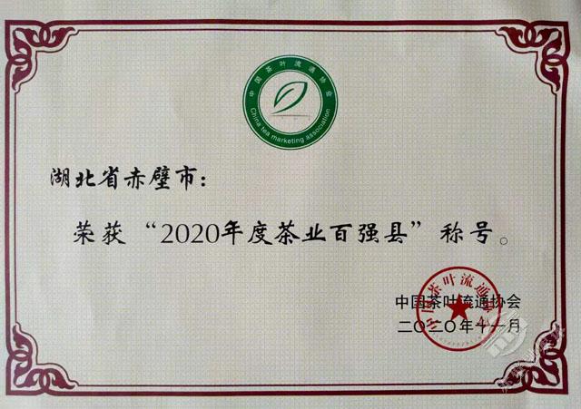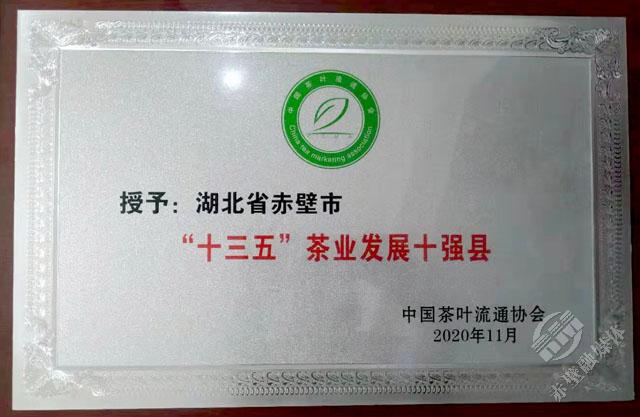 11月18日,第十六屆中國茶業(yè)經(jīng)濟年會正式發(fā)布了2020中國茶葉行業(yè)調(diào)查的最終結(jié)果,對年度中國茶業(yè)優(yōu)秀企業(yè)、優(yōu)秀縣域進(jìn)行授牌表彰。赤壁市榮獲“十三五百強縣市十強”和“2020年度茶業(yè)百強縣”稱號,其中“十三五百強縣市十強”中赤壁市是湖北省唯一入選的縣市,在“2020年度茶業(yè)百強企業(yè)”評選中,羊樓洞茶業(yè)股份有限公司成為咸寧市唯一入選的企業(yè)。