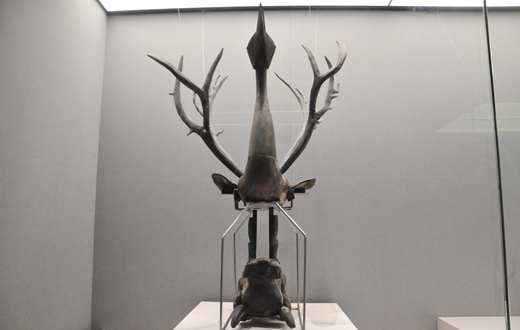 其中,西漢漆木七豹大扁壺、戰(zhàn)國蟾座鳳鳥羽人、戰(zhàn)國虎座鳳鳥懸鼓、戰(zhàn)國鳳鳥踐蛇蓮花蓋豆等工藝精湛的文物均是首次亮相。除了精美的展品,新珍品館還引入了一些現(xiàn)代化的展陳手段。
