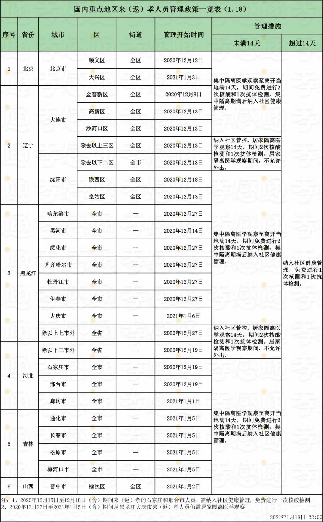1月18日國內(nèi)重點(diǎn)地區(qū)來(返)孝人員管理政策: