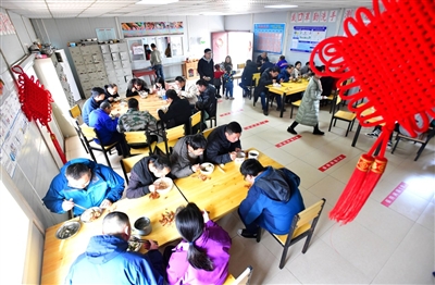 “項目部很貼心,給外地來的家屬準備了很多過年物資,還給孩子們準備了玩具。”在職工宿舍樓下,龔飛正帶著孩子們玩耍,她說,這里掛燈籠、貼春聯(lián)、糊窗花,在這里過年感受到了家一般的溫暖,年味濃濃。