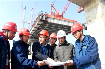 “今年春節(jié)因為趕工期和疫情防控,我還是選擇在工地過年?!?月13日,大年初二,記者走進赤壁長江公路大橋建設現(xiàn)場,30出頭的尹振君正和同事研究合龍技術方案,他已經(jīng)連續(xù)4年沒回家過年了。他們身后,大橋合龍僅剩最后的40米。