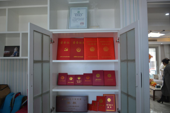 在家里的榮譽(yù)柜里,陳列著王玉蘭和丈夫多年來(lái)獲得的各種榮譽(yù)證書和獎(jiǎng)杯。王玉蘭的丈夫范三林在江蘇武警某部服役十二年期間,榮立三等功兩次,評(píng)為優(yōu)秀士官三次,多次受到上級(jí)的嘉獎(jiǎng)表彰。王玉蘭在支持丈夫工作的同時(shí),工作勤勤懇懇,多次被評(píng)為先進(jìn)工作者。安陸市婦聯(lián)負(fù)責(zé)人對(duì)王玉蘭夫婦取得的成績(jī)給予了高度評(píng)價(jià),稱贊王玉蘭為全市廣大婦女姐妹們樹立了榜樣,值得大家學(xué)習(xí)。