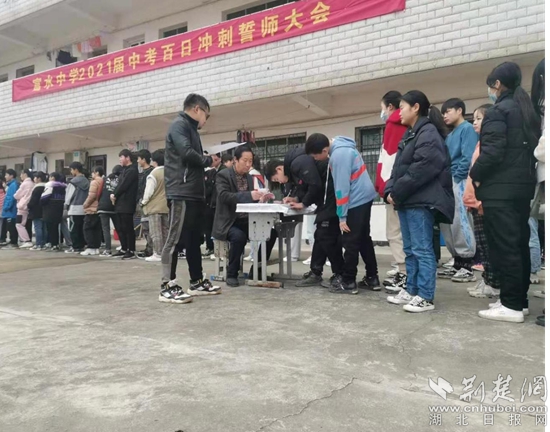 上午9時許,在活動現(xiàn)場,學(xué)生們井然有序地排起了長隊。富水中學(xué)的教師們?yōu)楂@得本次資助的210名學(xué)生現(xiàn)場發(fā)放了60000元資困助學(xué)金,并勉勵學(xué)子們努力學(xué)習(xí)、早日成才、傳遞愛心、回報社會。