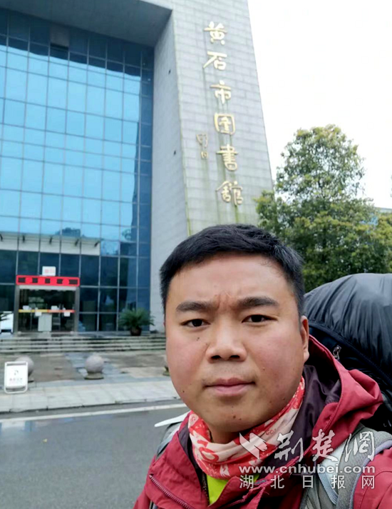 荊楚網(wǎng)(湖北日報網(wǎng))訊 (記者呂鑒蕾 阮瓊)3月19日下午7點,鄂州市圖書館前,一位背包客舉起自拍桿,“咔嚓”一聲,鄂州市圖書館幾個大字和背包客風(fēng)塵仆仆的身影定格在這一刻。